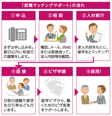 留学生の採用を検討する市内企業を対象に、紹介から採用まですべてを支援します。料金、費用 利用無料。利用をするには事前に申し込みが必要。詳細は問い合わせを。