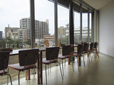 また、北側の席からは、浅生公園や図書館を見ながら食事をとることができます。区役所にお越しの際は、ぜひお立ち寄りください。