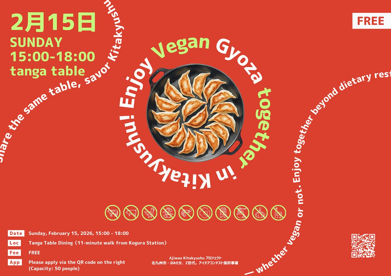 人と人、人と文化、地域と世界がつながる時間。ヴィーガンやベジタリアンなど食の制約があっても同じテーブルを囲めるインクルーシブな体験をつくるため、まず自分自身が、北九州の食文化や生産者の思いを学んでいきます!