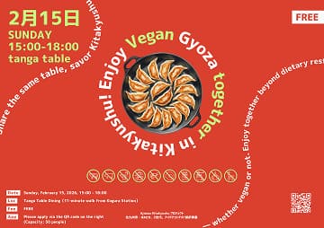 さらに 2月15日(日) には、ヴィーガンの方もそうでない方も一緒に楽しめる食事イベントを開催します。